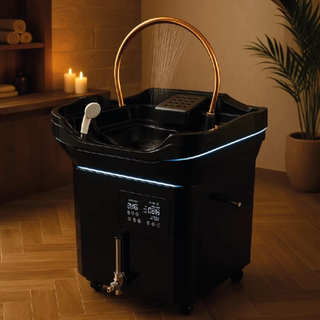 - Cuenta con un sistema de agua independiente, lo que significa que no necesita estar conectado a una instalación de fontanería permanente. Incluyen una bomba para asegurar un flujo constante y controlado de agua, lo que permite realizar los lavados de manera suave y precisa.